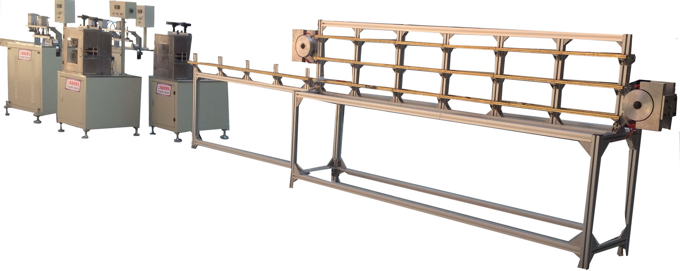 This line is consist of the specialized extruding machine, peculiar glueing mould, servo roller traction machine, servo precise cutting machine. The products are mainly used for glueing on the sealing strips of cars, J type bar, sheet and the like.