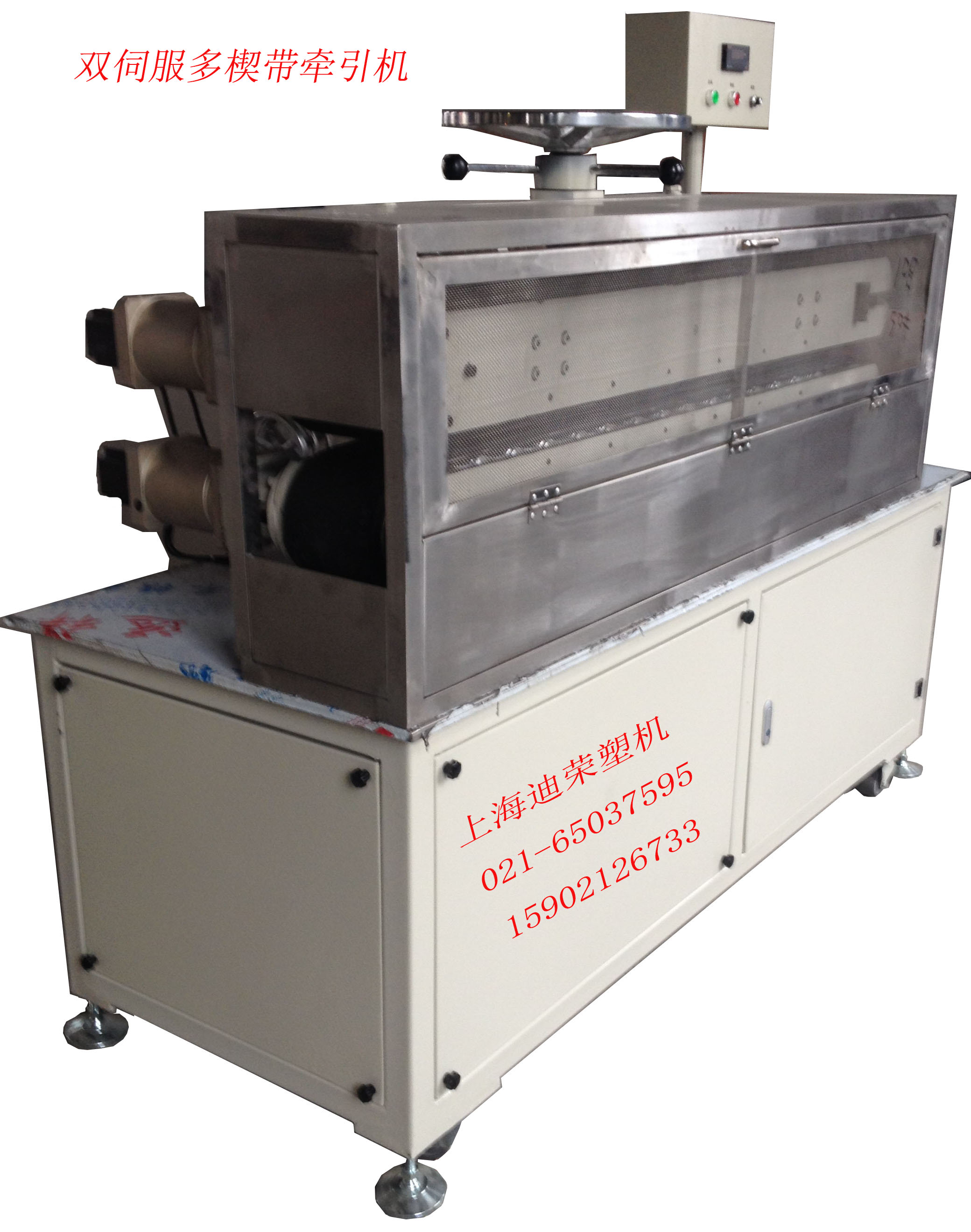 该牵引机采用无缝定制多楔带输送,所有托轮均采用铝棒加工,上下主轮均为主动轮,稳定性好,精密度高,适合于各种异型材及管材的牵引。